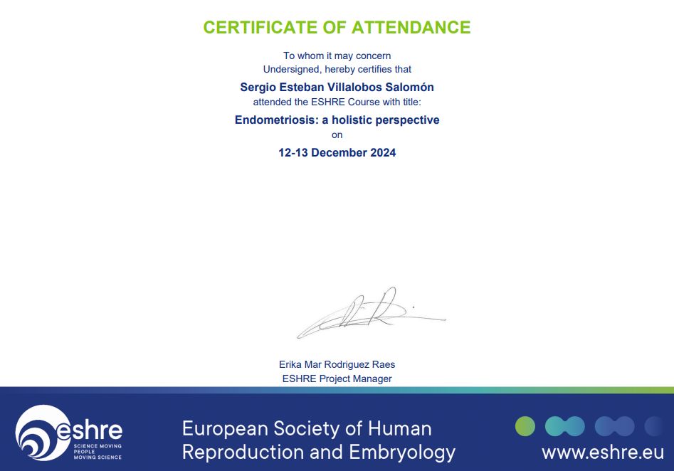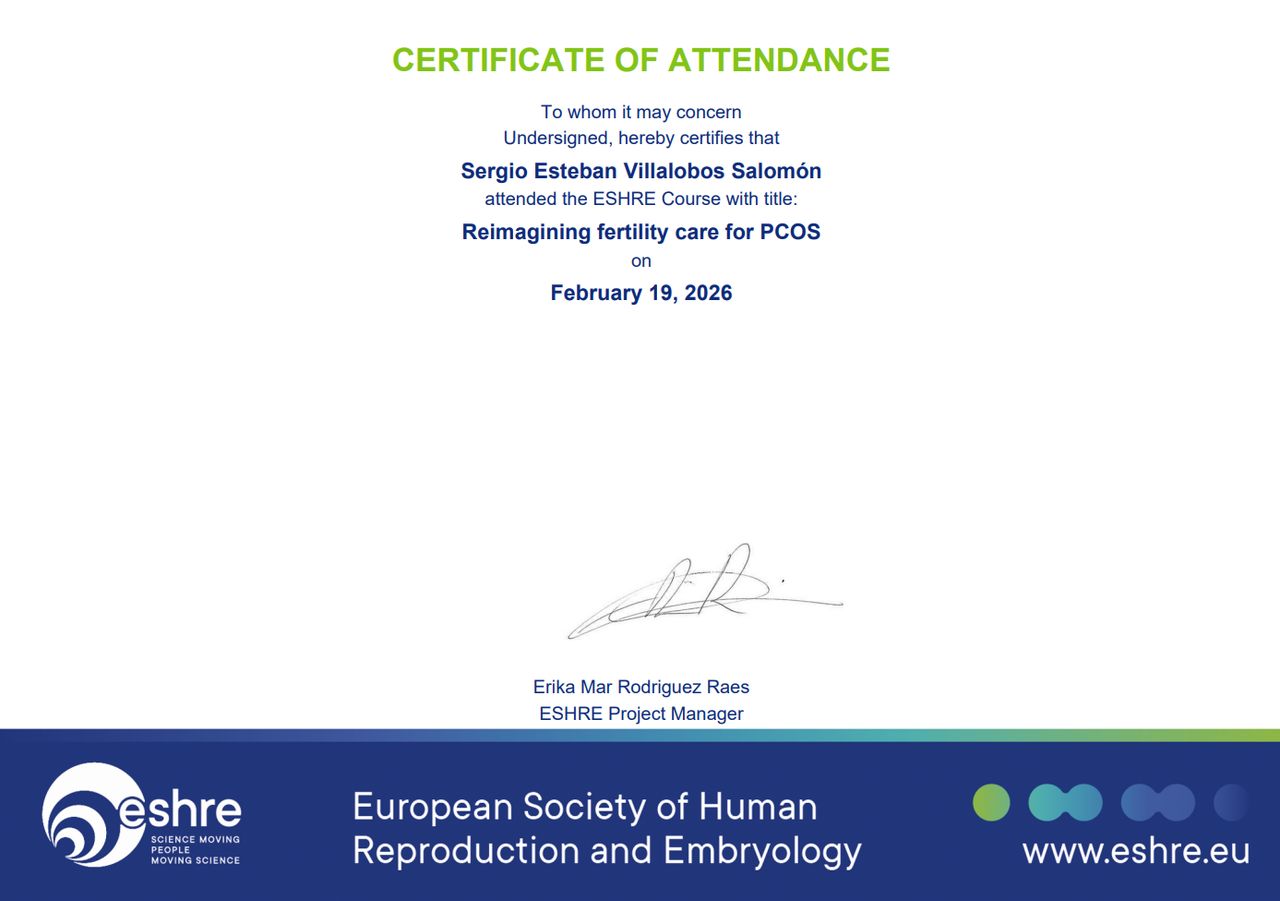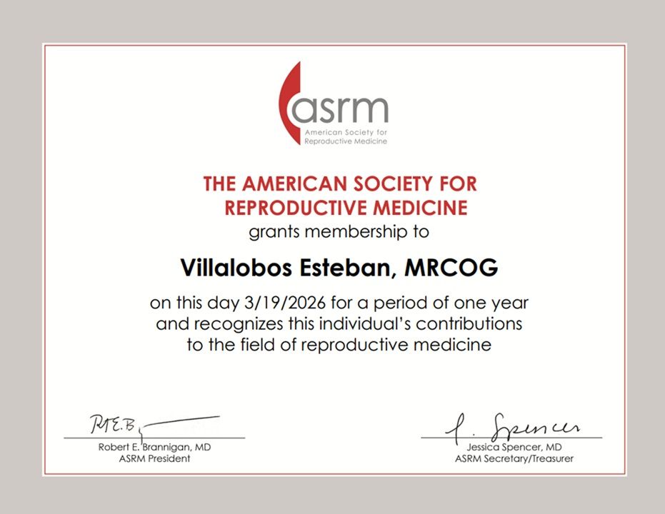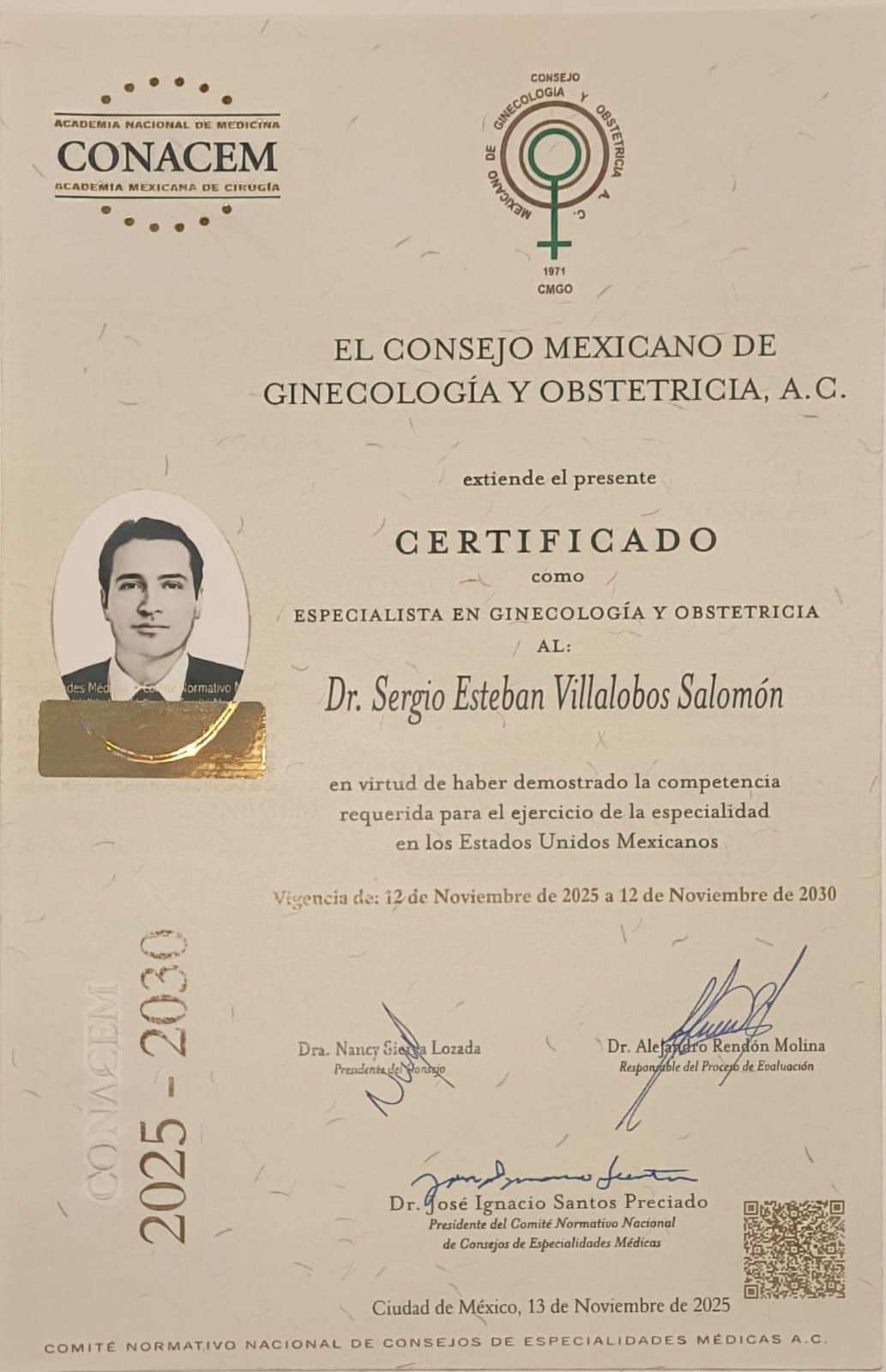 Soy el Dr. Esteban Villalobos Salomón, Ginecólogo subespecialista en Biología de la Reproducción Humana (BRH), con enfoque en Ginecoendocrinología y Fertilidad. Me formé en la UNAM, con especialidad en el Hospital Juárez de México y subespecialidad en endocrinología reproductiva (BRH), me mantengo en actualización constante como Fellow del American College of Obstetricians and Gynecologists (FACOG), miembro activo de la European Society of Human Reproduction and Embryology (ESHRE) y la American Society for Reproductive Medicine (ASRM).